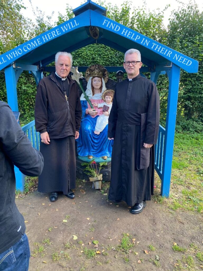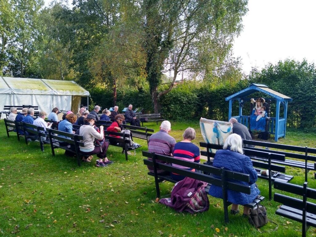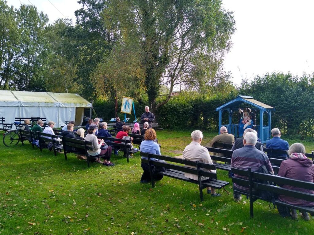 From the feast of the Holy Rosary until Sunday, 10th October over 30 pilgrims took part in the Rosary Blast in Walsingham. Many hundreds joined us in spirit from all over the world. We recited ten full 15 decade Rosaries during the Blast at the Slipper Chapel and its grounds, along the Holy Mile, in the Abbey and in Walsingham village. Each decade was preceded by a meditation by Bishop Williamson or Fr Morgan. The Bishop spoke much of the severe situation of Church and world and how powerful the Rosary is to combat all the current evils.