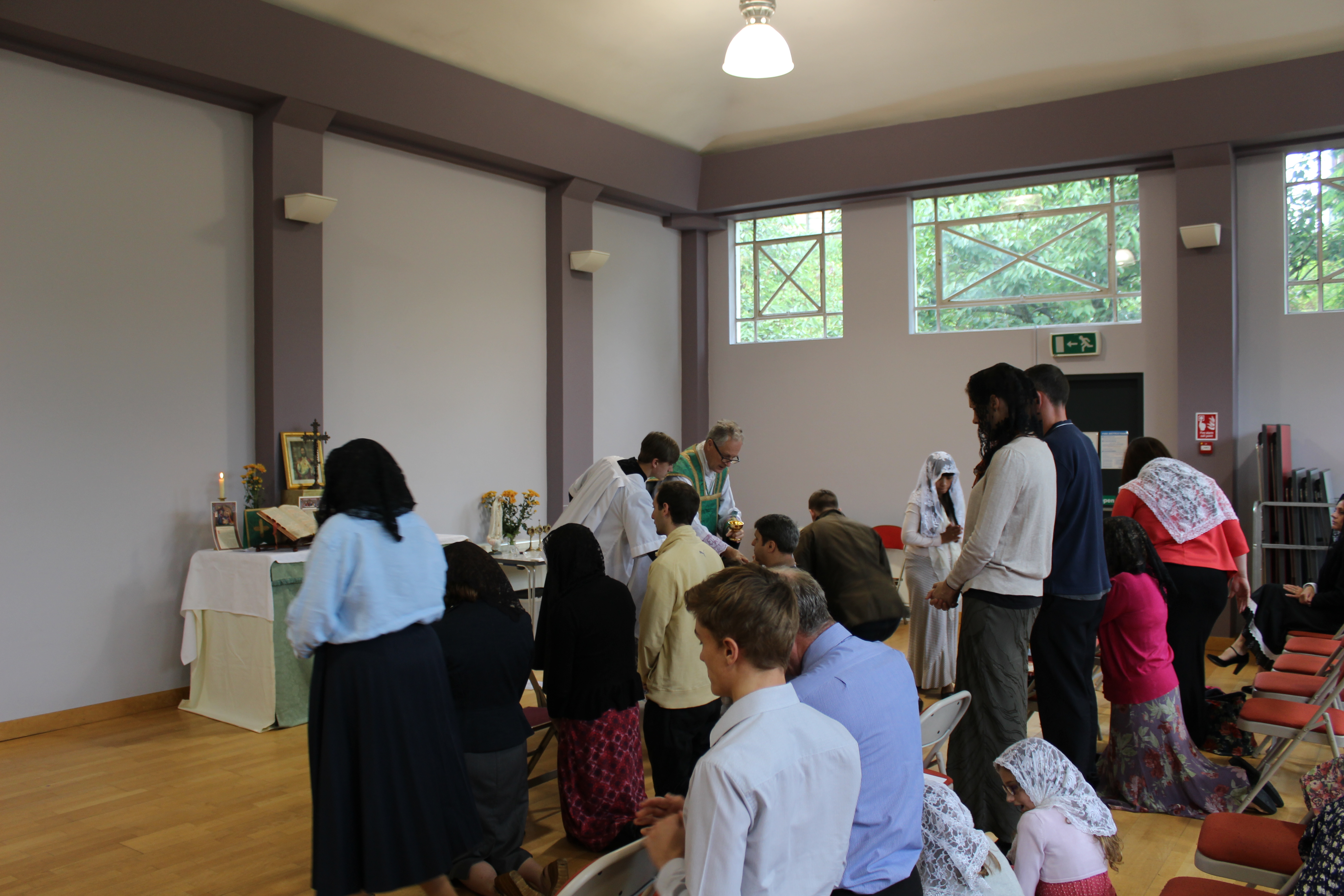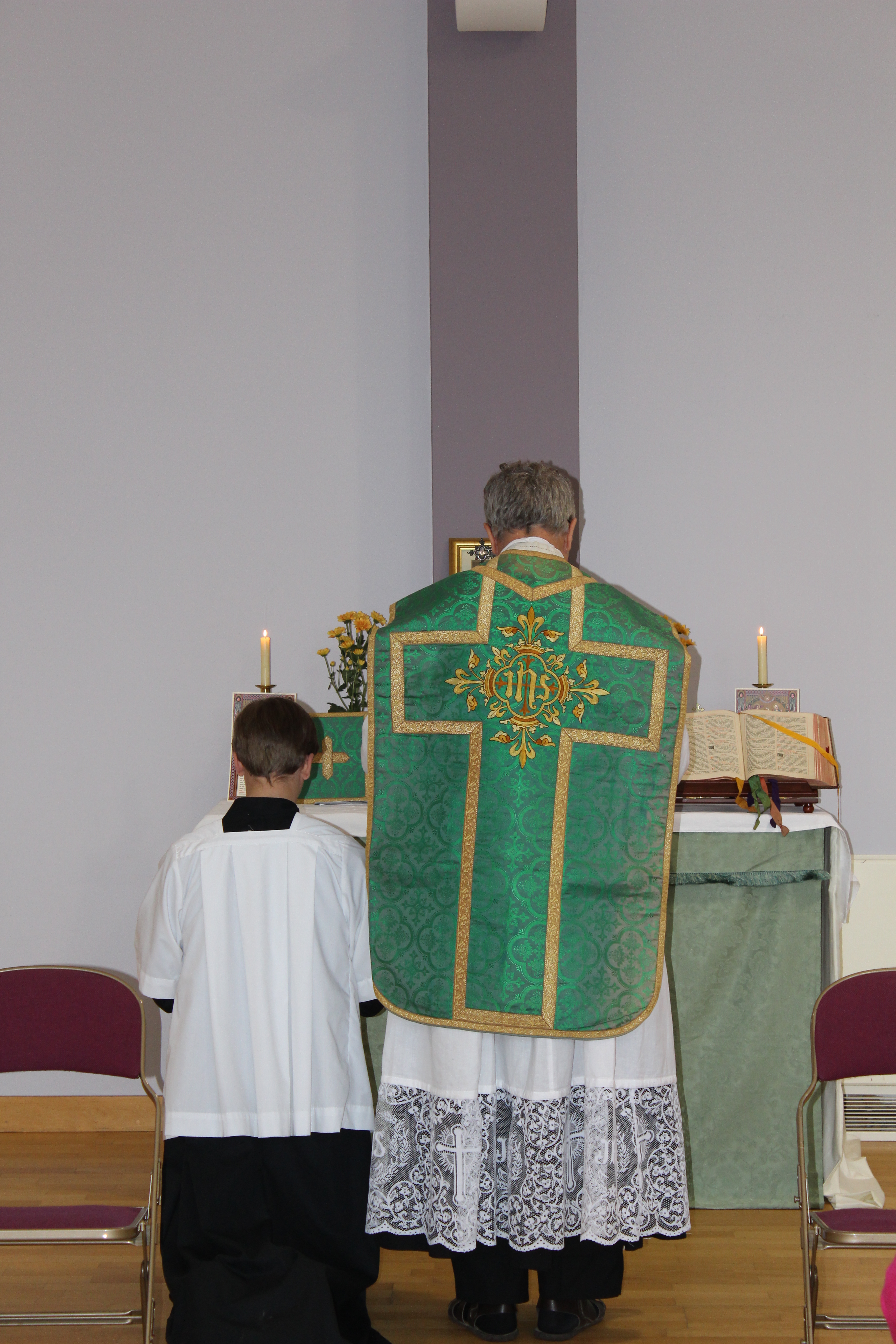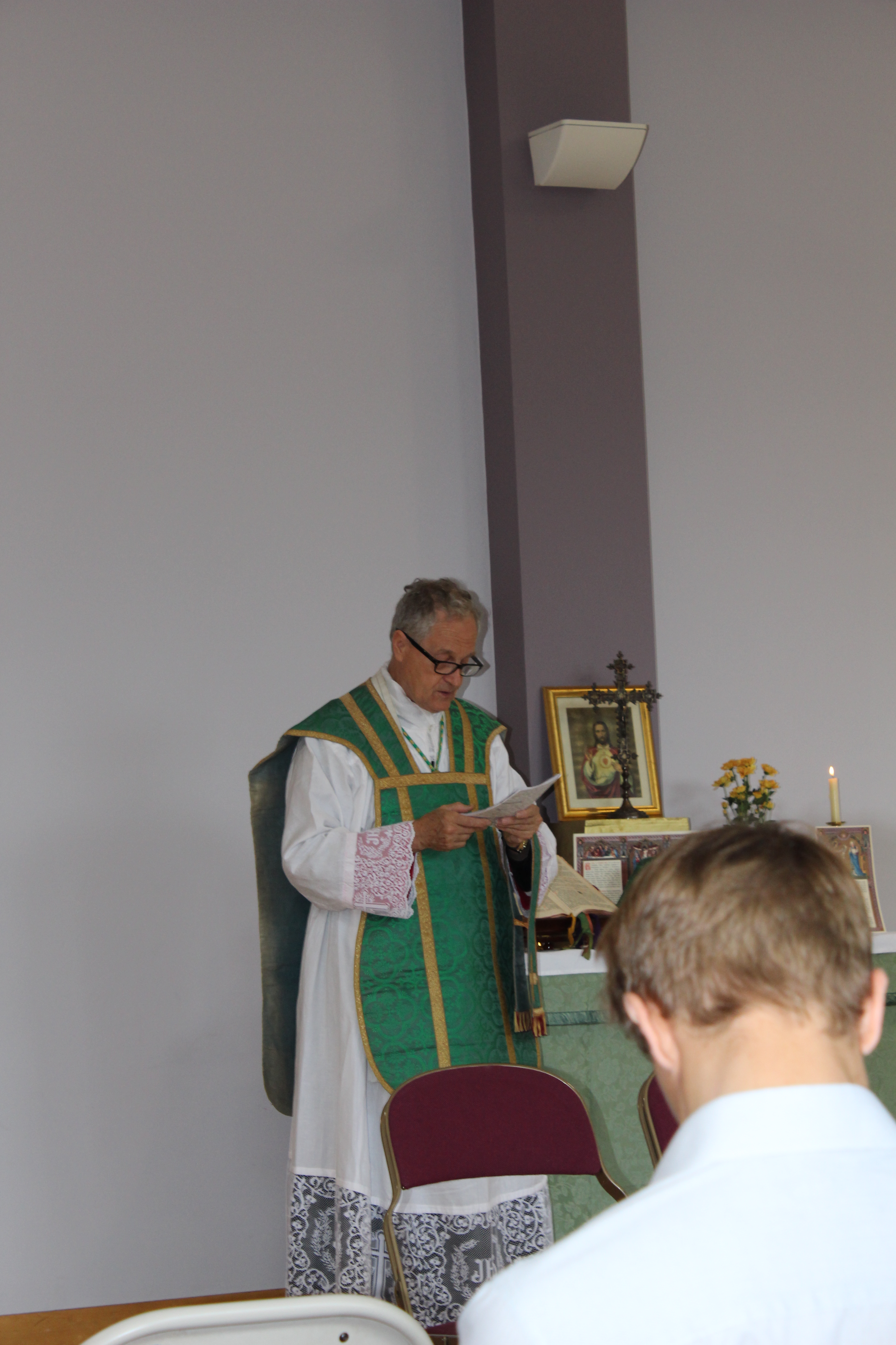 We were honoured and blessed to have His Lordship Bishop Faure come to say Mass especially for us in Earlsfield on Sunday 26th July, the feast of St Anne, with the encouragement of Bishop Williamson. After Mass, the 30 or so faithful present were able to witness the Profession of a Discalced Carmelite tertiary who had the rare privilege of being received as a novice by Bishop Williamson and then professed by Bishop Faure.