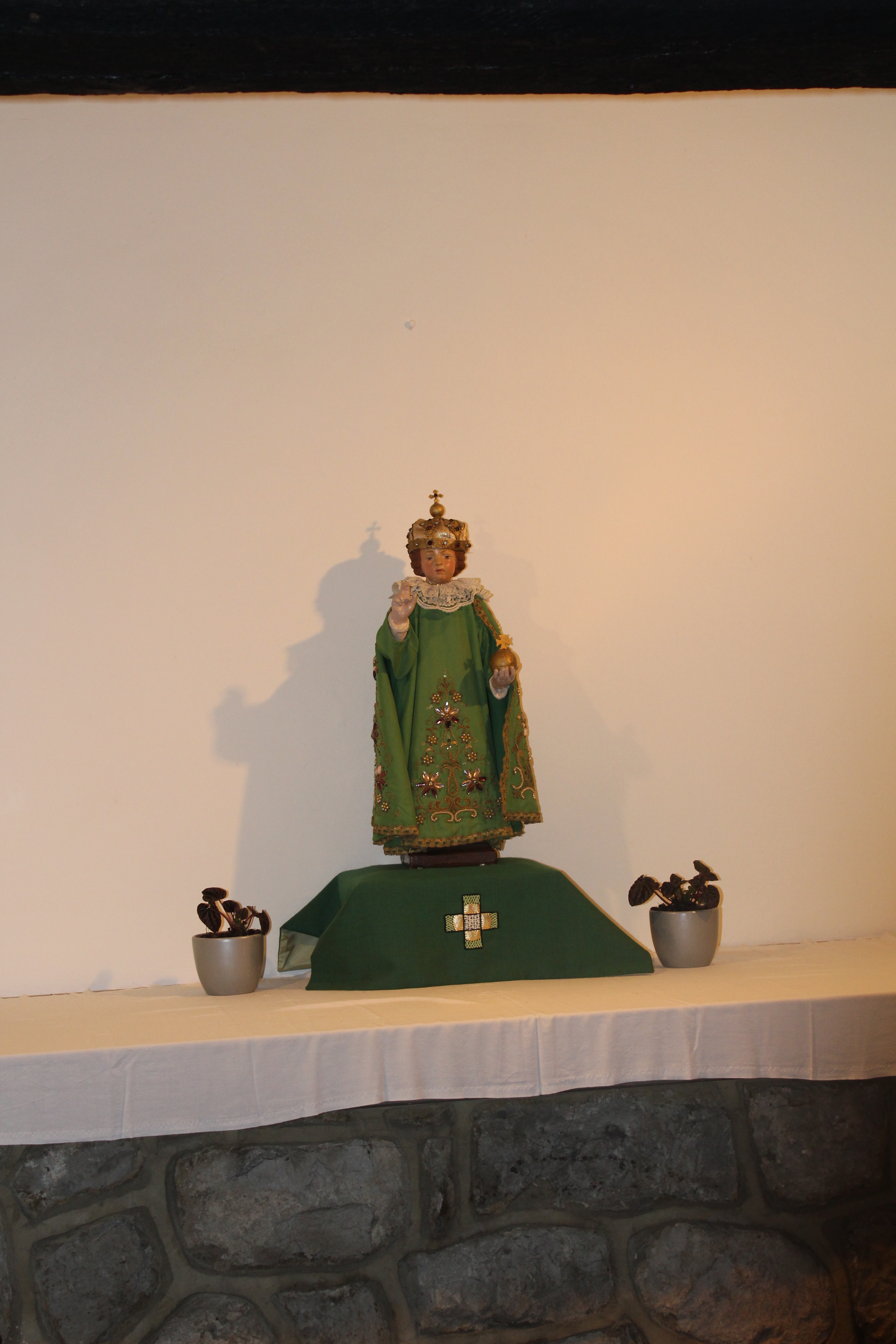 Reciting the Rosary in the Chapel of the Infant of Prague.