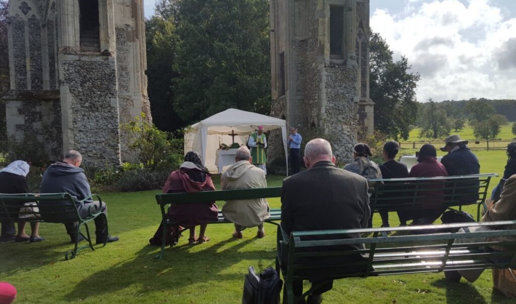 Mass in Abbey grounds on the site of the high altar.