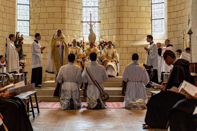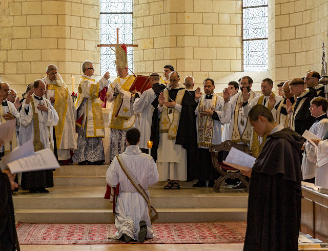The ordination ceremony of these three seminarians of the Saint Louis Marie Grignon de Monfort seminary took place at the Dominican convent of Avrillé.